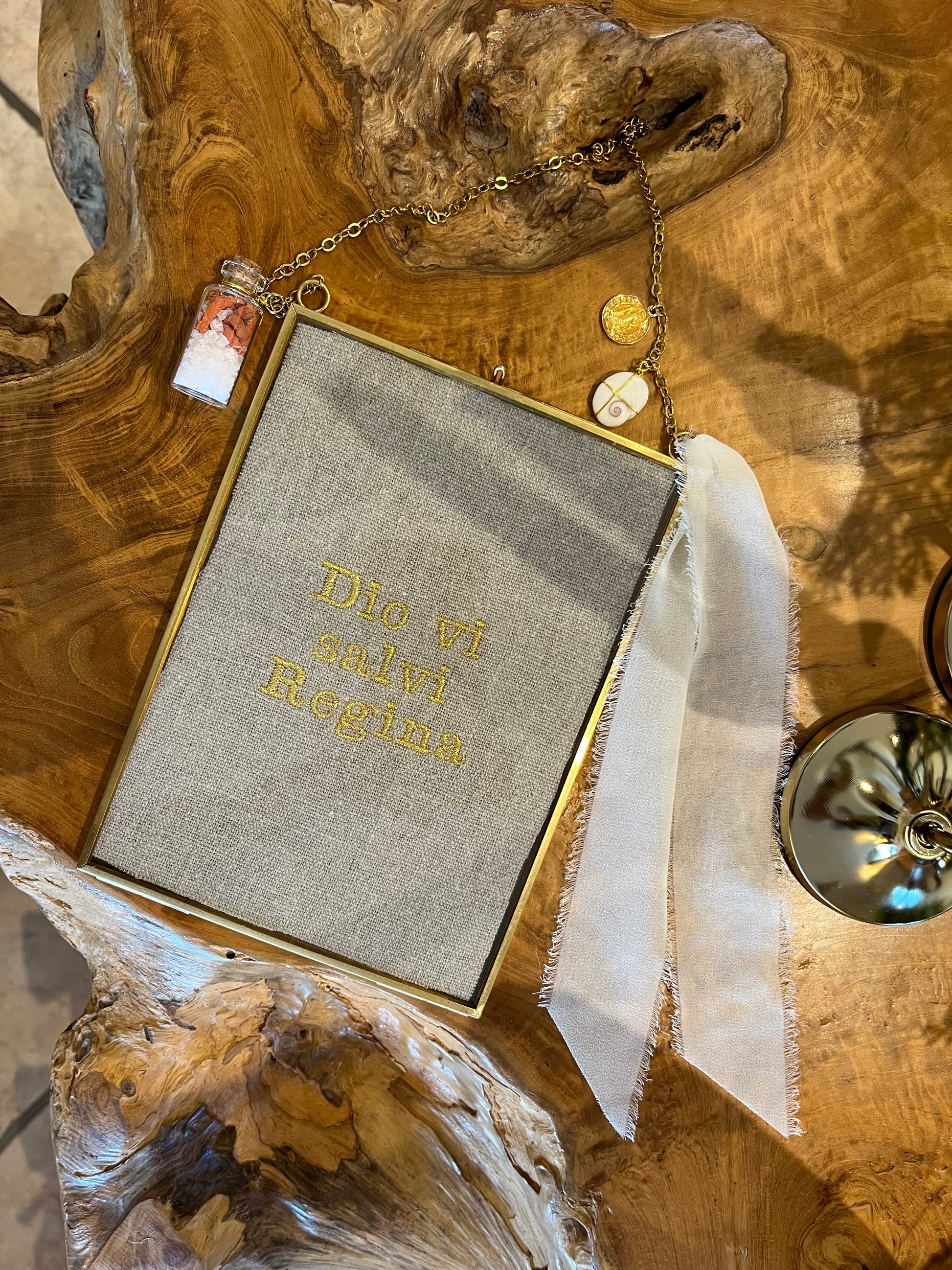 Cadre «Dio vi salvi Regina» grand modèle (naturel brodé doré)