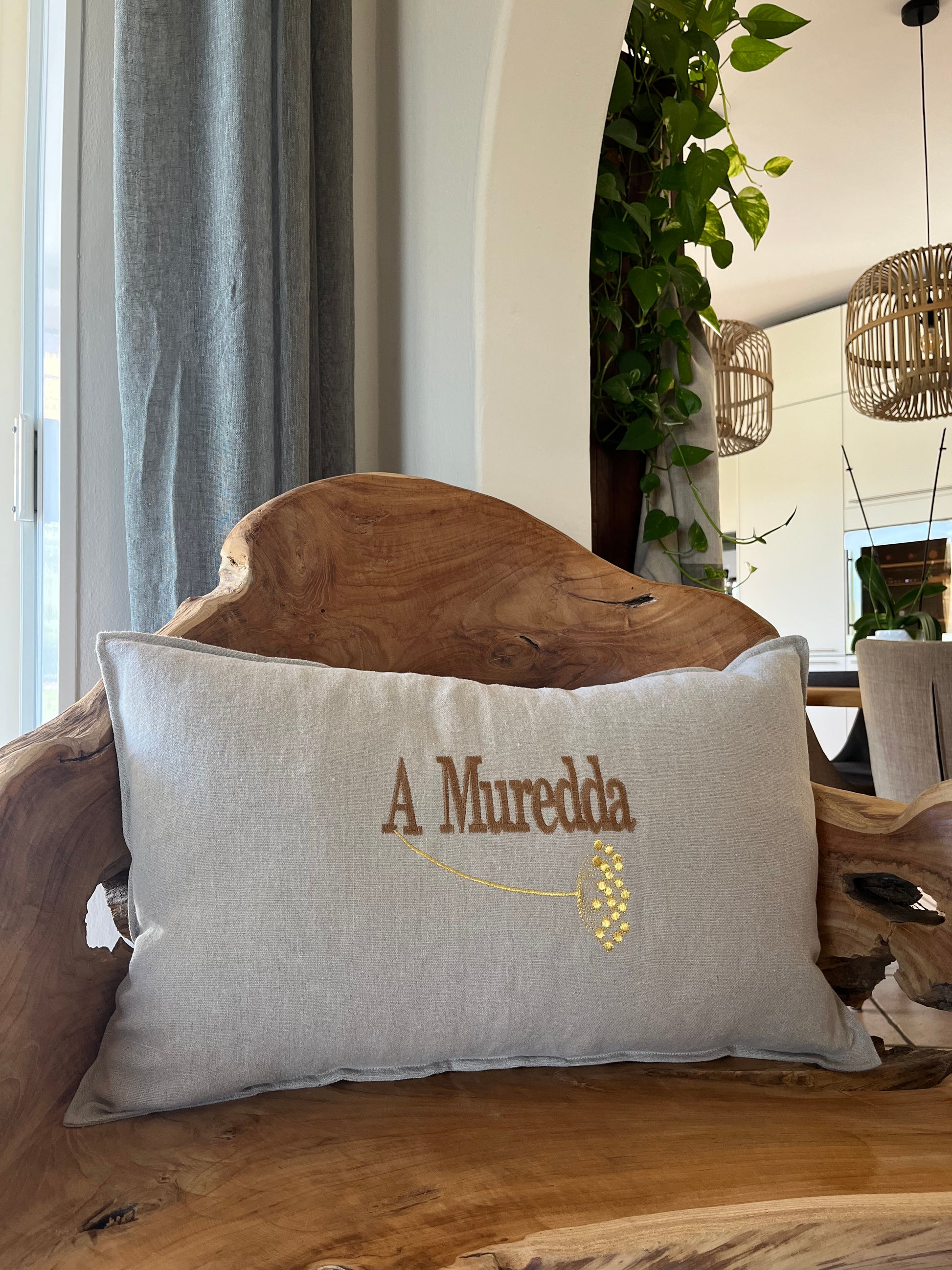 Coussin en Lin rectangulaire "A Muredda" brodé (naturel)