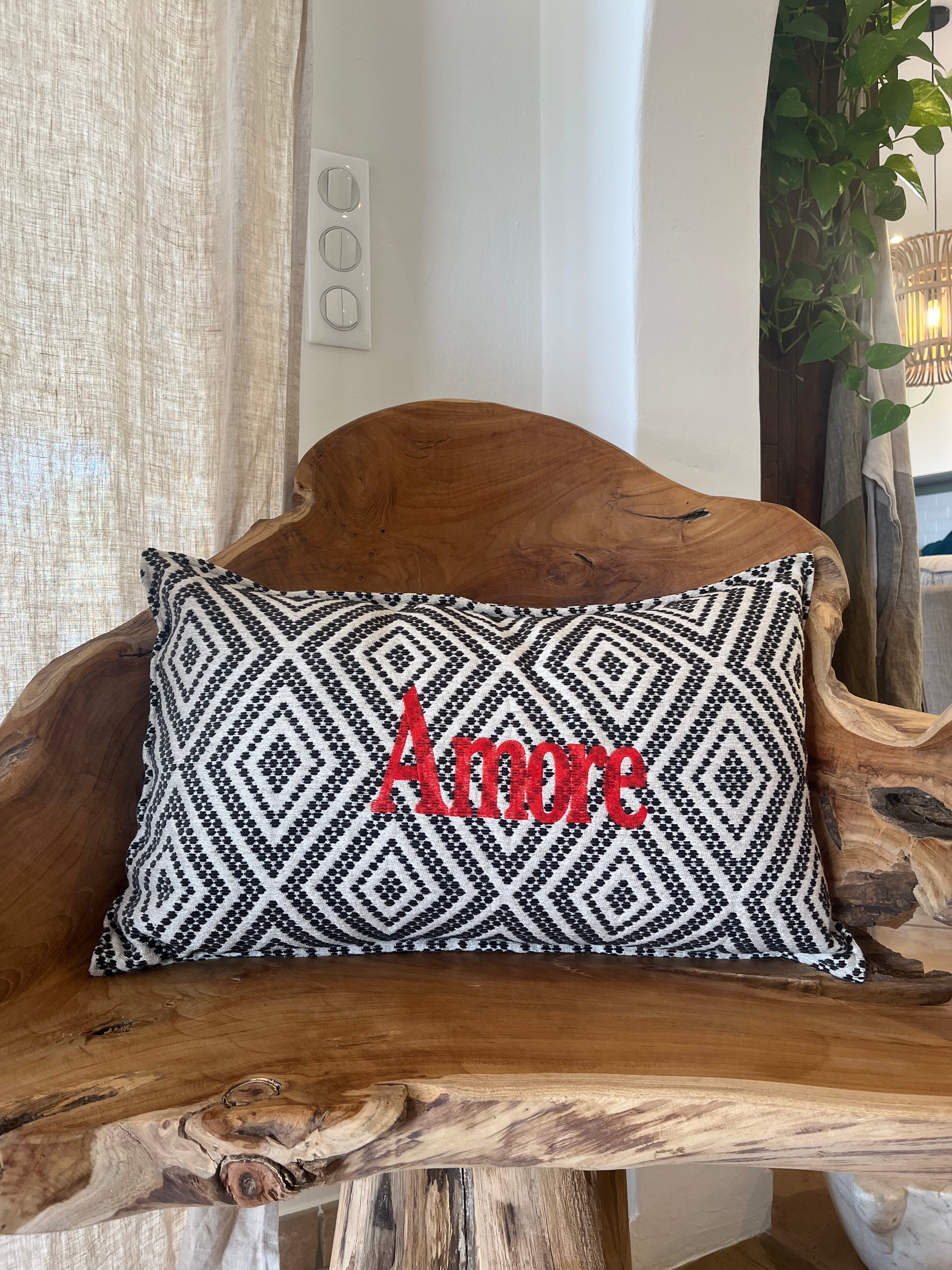 Coussin en Lin rectangulaire "Amore" brodé (géométrique)